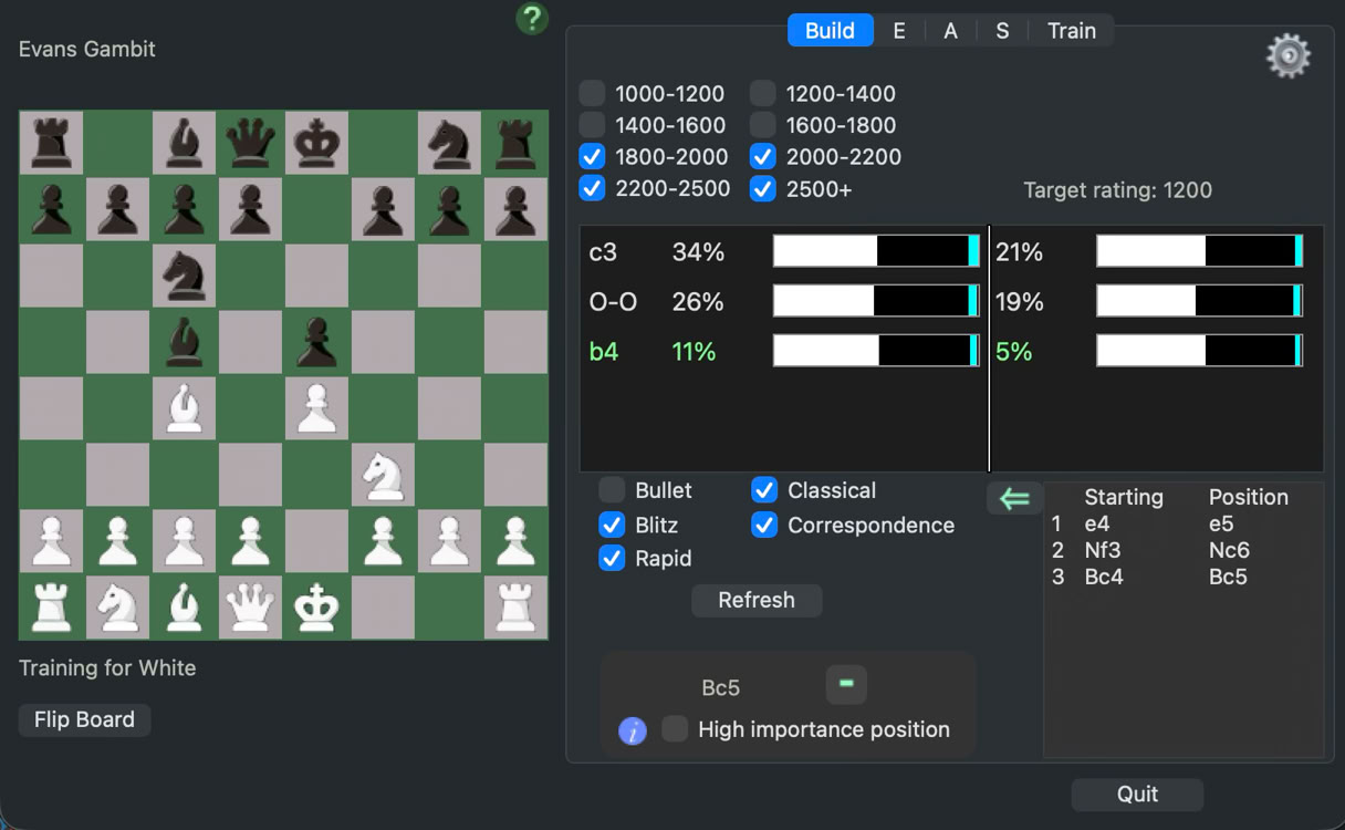 Build your personal repertoire by viewing the performance statistics of critical positions